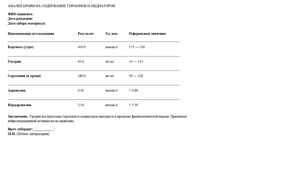 Анализ на содержание медиаторов и гормонов 235/у