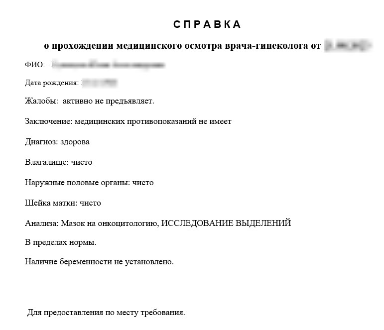 Справка от гинеколога
