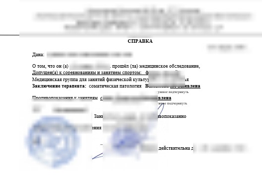 Пройденная комиссия и заключение о годности обследуемого к бегу подтверждает, что у него нет противопоказаний к планируемой физической нагрузке. Без этой справки к соревнованиям не допустят, ее наличие подтверждает, что у спортсмена нет тех заболеваний, которые могут привести к резкому ухудшению самочувствия, обмороку и другим проблемам со здоровьем на дистанции. Для допуска к занятиям бегом не подходит выписка из амбулаторной карты, справка, разрешающая занятия физкультурой, документ, оформленный по форме 086/у. Выдают бумаги по предъявлению паспорта, при наличии хронических заболеваний врачу нужно об этом сообщить.