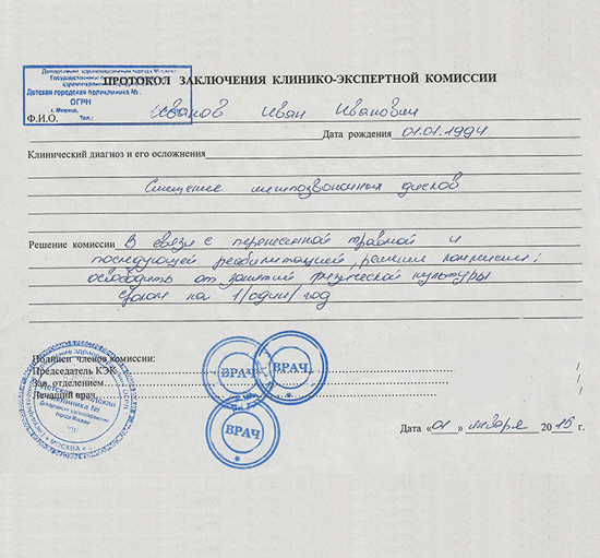 Справка освобождение от физкультуры в СПб
