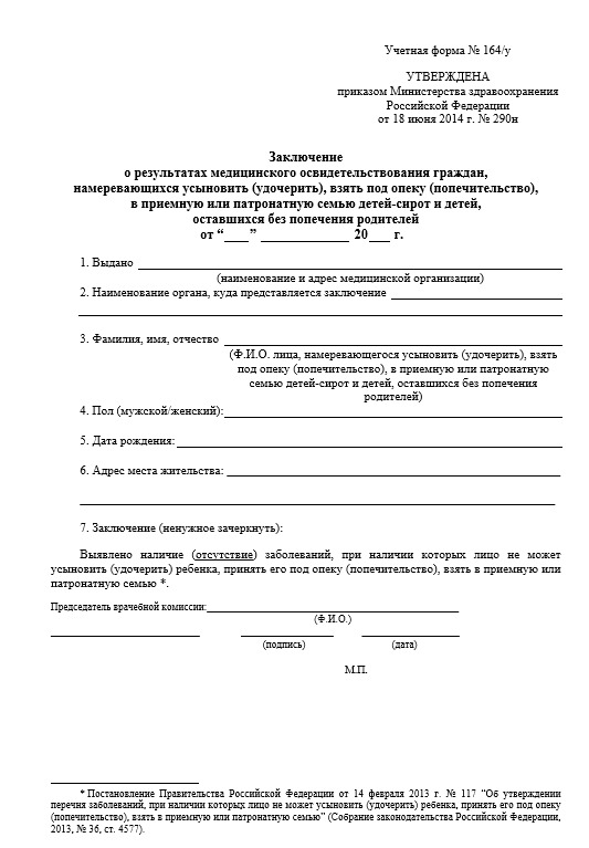 Согласно законодательству РФ, усыновителю или опекуну требуется обязательное прохождение медкомиссии. Причина – в выявлении опасных болезней, которые исключают возможность опекунства, усыновления, поскольку несовершеннолетний может заразиться ими, либо пострадать другим образом. В список включают следующие заболевания: