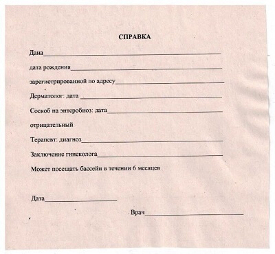 Справка для бассейна взрослому