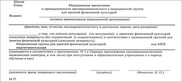 Справка о группе здоровья