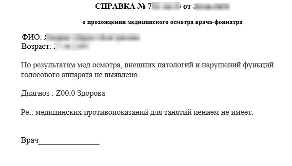 Справка от фониатра