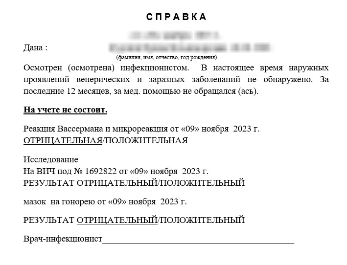 Справка от инфекциониста