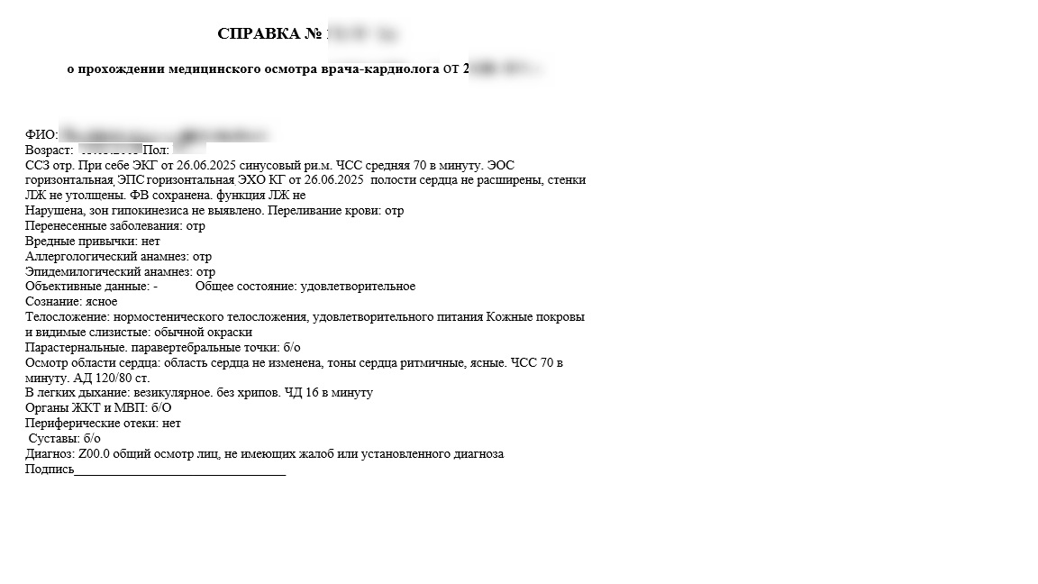 Справка от кардиолога