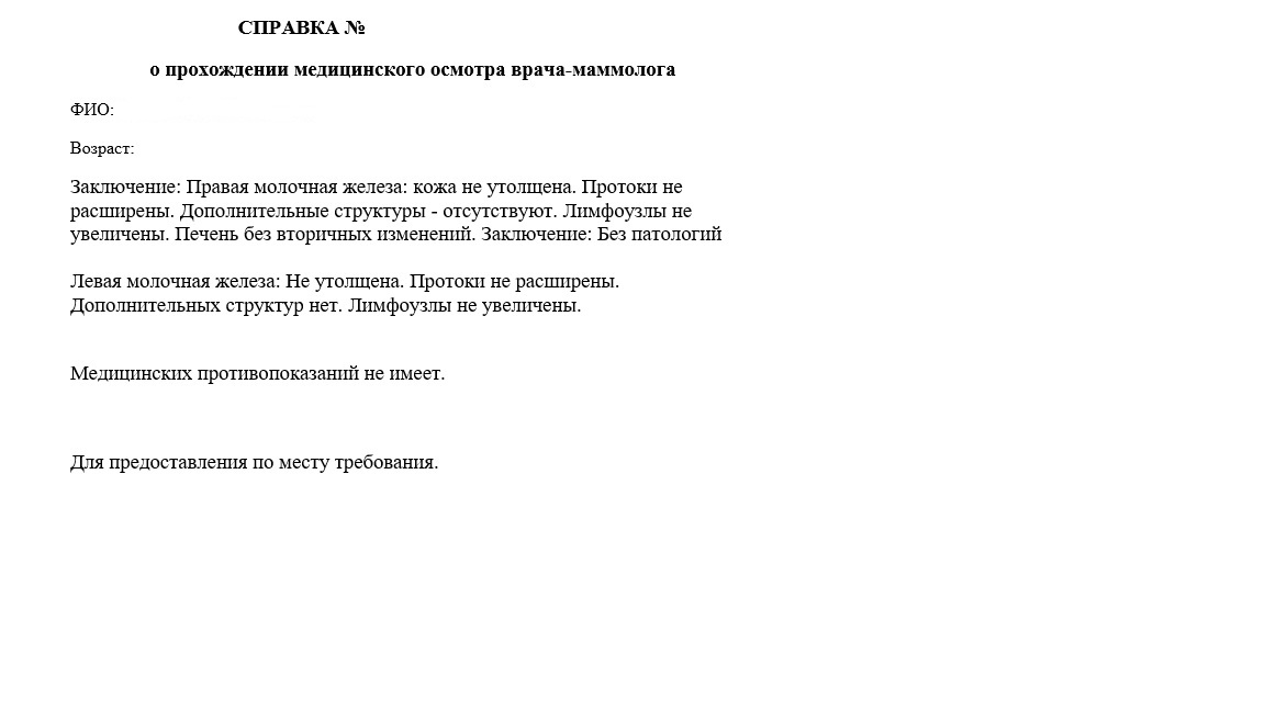 Справка от маммолога