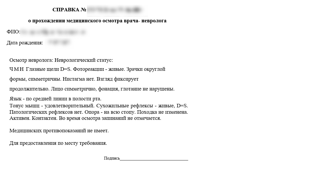 Справка от невролога