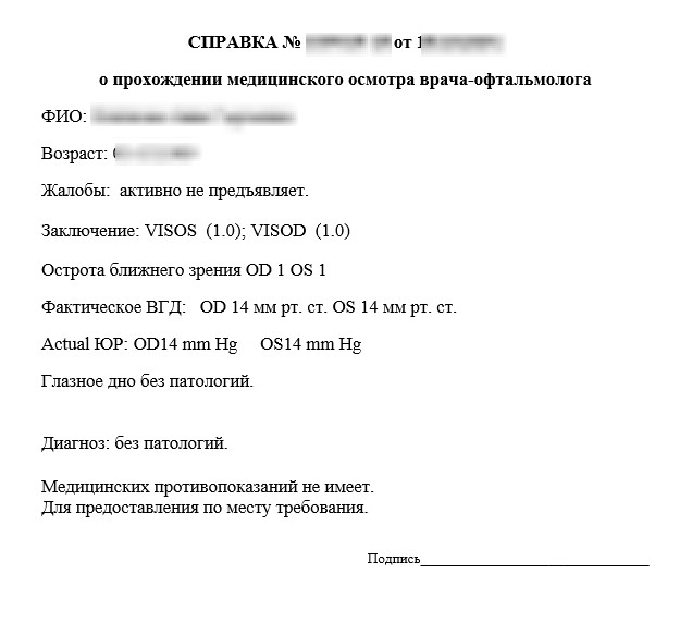 Справка врача офтальмолога – где купить и как получить