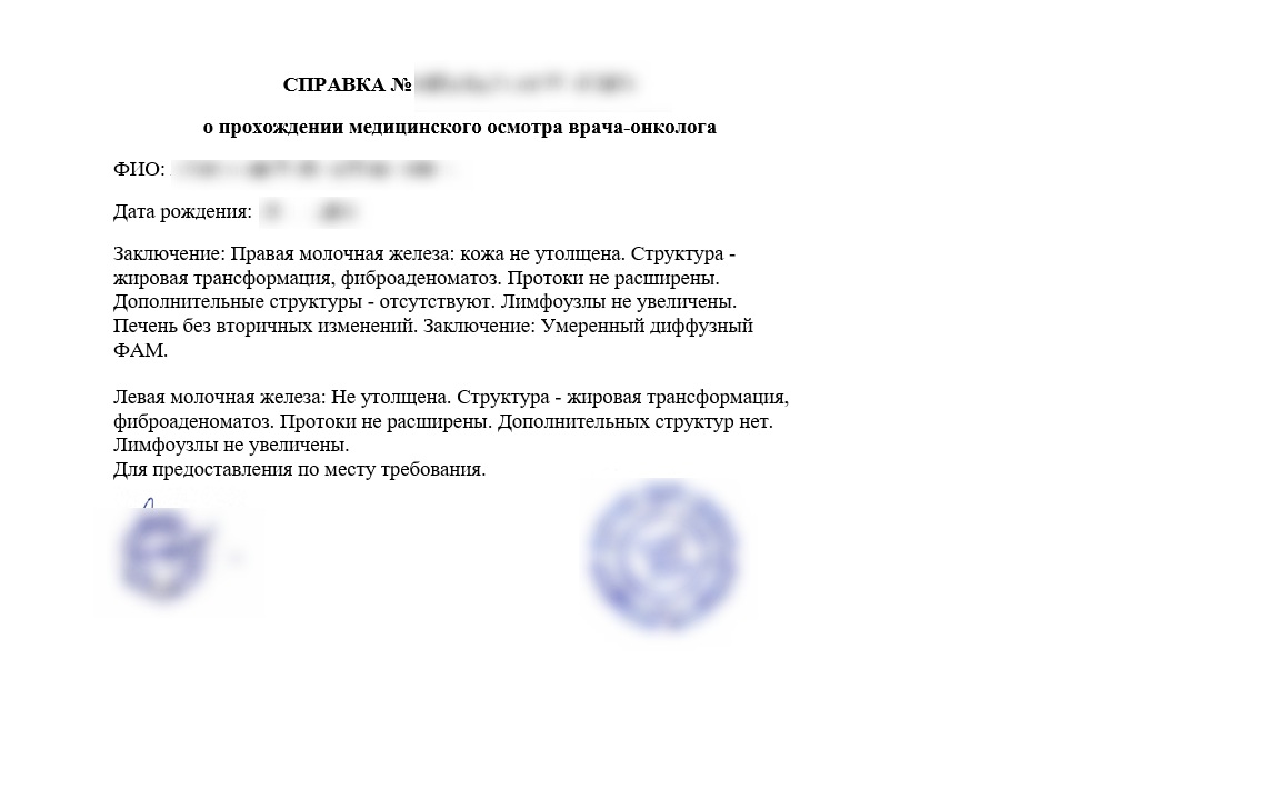 Мы предлагаем не тратить время и здоровье в очередях. Оставьте заявку на сайте или позвоните по телефону, и оператор подробно расскажет, как быстро можно получить врачебное заключение на унифицированном бланке с подписью и печатями. Цена справки от онколога с указанием диагноза и рекомендаций доступна для всех. Стоимость может повыситься, если требуется срочная доставка бланка по городу.