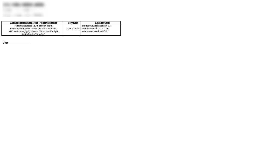Справка с анализом на титры антител к кори