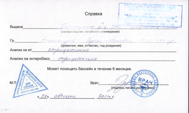 Порядок получения справки в бассейн